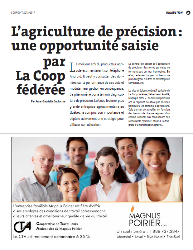 25.  Agriculture de précision: une opportunité saisie par La coop Fédérée