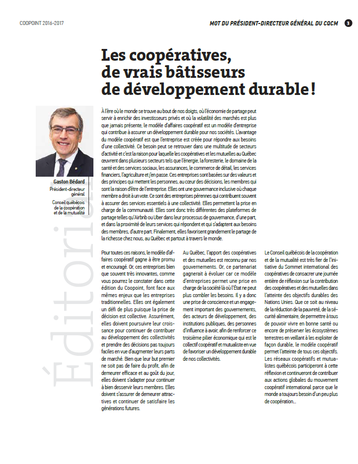3.    Mot du président du CQCM – Les coopératives, de vrais bâtisseurs de développement durable!