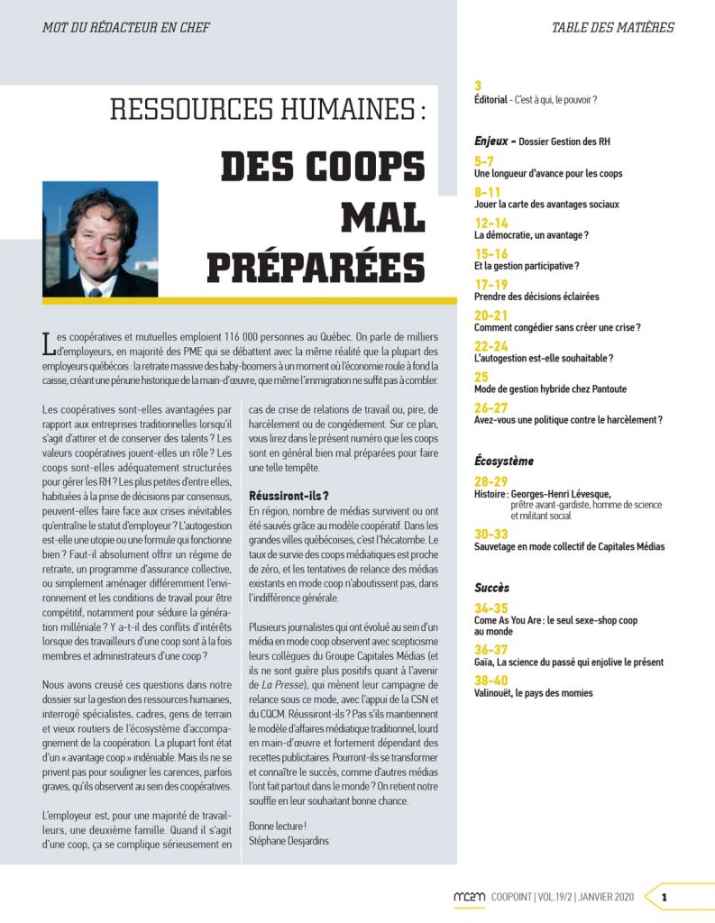 Les coopératives et mutuelles emploient 116 000 personnes au Québec. On parle de milliers d’employeurs, en majorité des PME qui se débattent avec la même réalité que la plupart des employeurs québécois : la retraite massive des baby-boomers à un moment où l’économie roule à fond la caisse, créant une pénurie historique de la main-d’oeuvre, que même l’immigration ne suffit pas à combler.