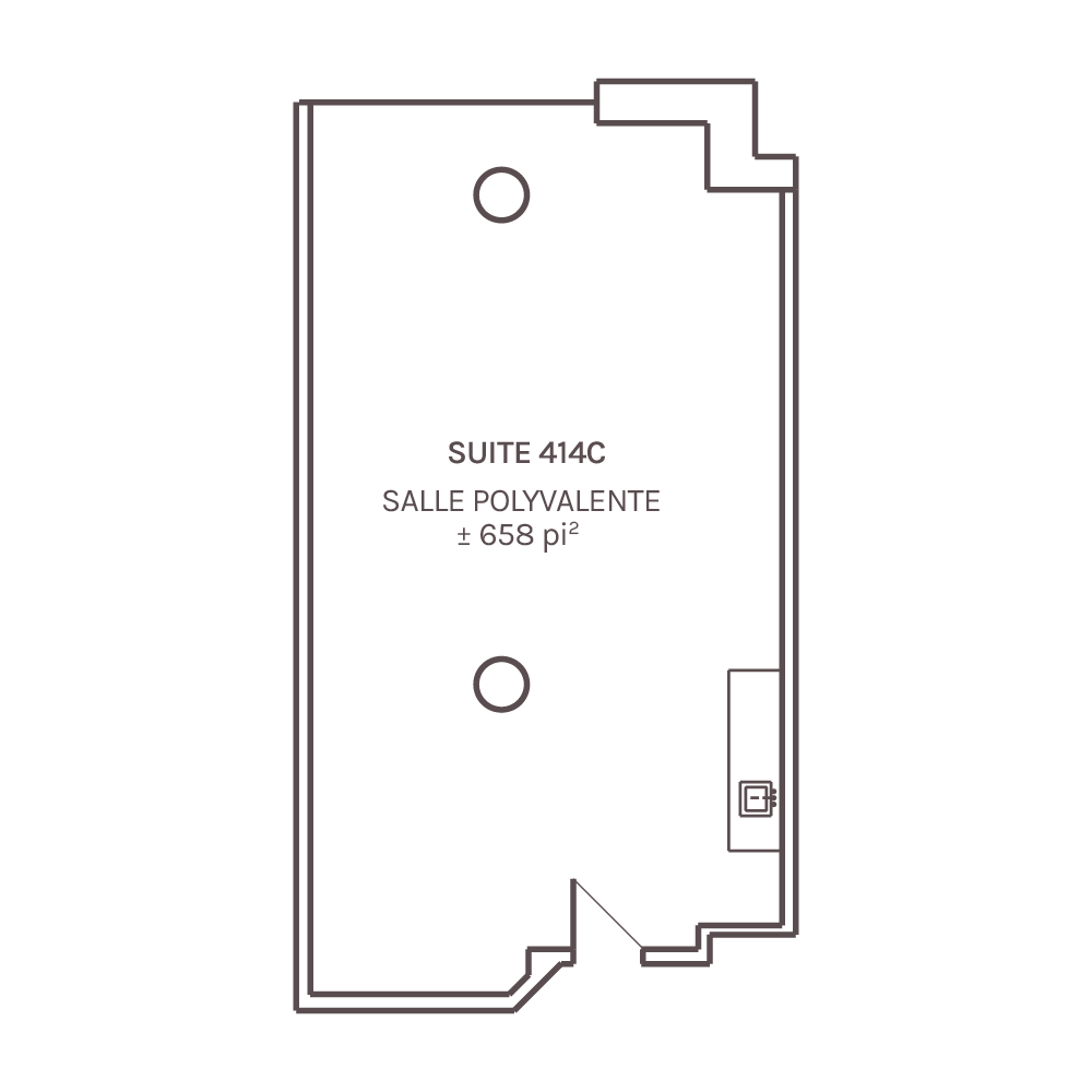La suite 414C est un espace ouvert et lumineux conçu pour les professionnels qui recherchent simplicité et flexibilité. Que ce soit pour une startup, un studio de création ou un espace de brainstorming, la suite 414C s’adapte aux besoins évolutifs des entreprises modernes. La cuisinette intégrée permet un espace de travail encore plus agréable et fonctionnel.